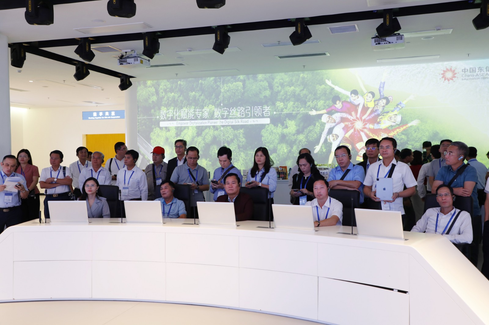 走进中国—东盟信息港数字经济展示中心,阮志善一行详细了解了中国—东盟信息港建设情况、目前中国东信正在开展的面向东盟的数字经济项目以及中国东信作为数字丝路引领者为建设数字广西和东盟数字经济合作平台所作出的努力和成效。