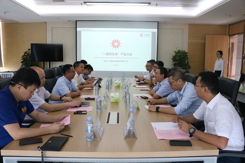 2018年5月14日,上海智能交通有限公司(以下简称“上海智能交通”)总经理常光照和北海旅游集团公司副总经理谢文浩到中国—东盟信息港股份有限公司(以下简称“中国东信”)参观交流,中国东信副总裁陈科明陪同座谈。